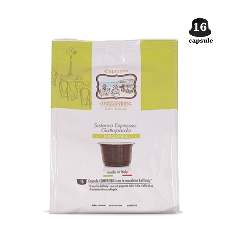 Amestecul INSONNIA este, printre amestecurile L ‘Espresso Gattopardo, cel puternic. Provine din prăjirea boabelor selectate 100% naturale Robusta din Asia de Sud pentru o cafea plină de corp, cu un gust puternic și un ton marcat. Prăjirea Insomniei garantează echilibrul potrivit între aromă, parfum și aromă.