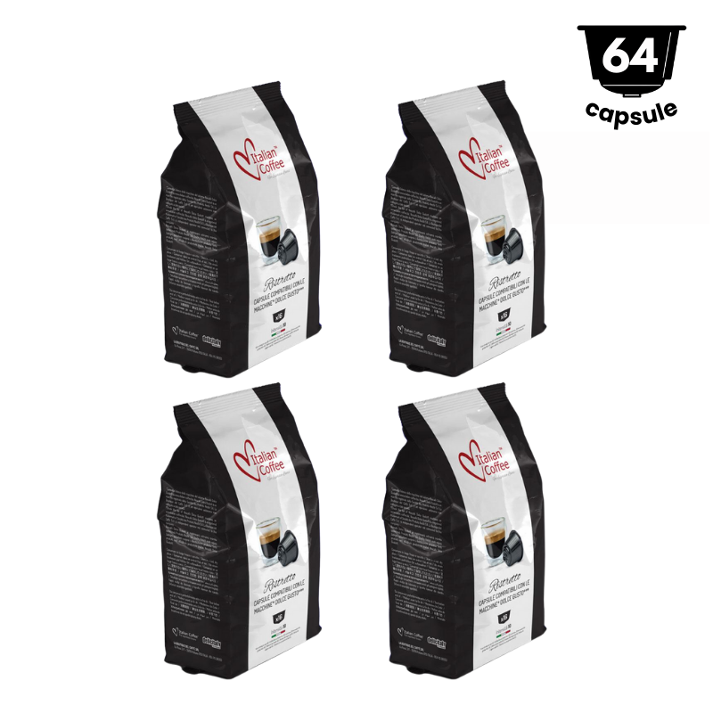 Pachetul contine 4 pungi de Italian Coffee Espresso Ristretto Compatibil Nescafè Dolce Gusto a cate 16 capsule fiecare