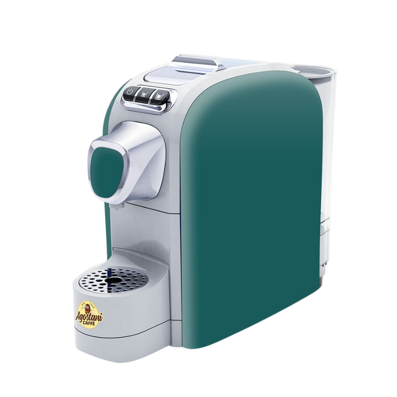 Espressorul Agostani Small Cup Bosco este un aparat de cafea cu capsule, cu design compact și elegant, ideal pentru uz casnic sau birou. Varianta de culoare bosco (verde închis) adaugă un plus de stil și personalitate spațiului tău.