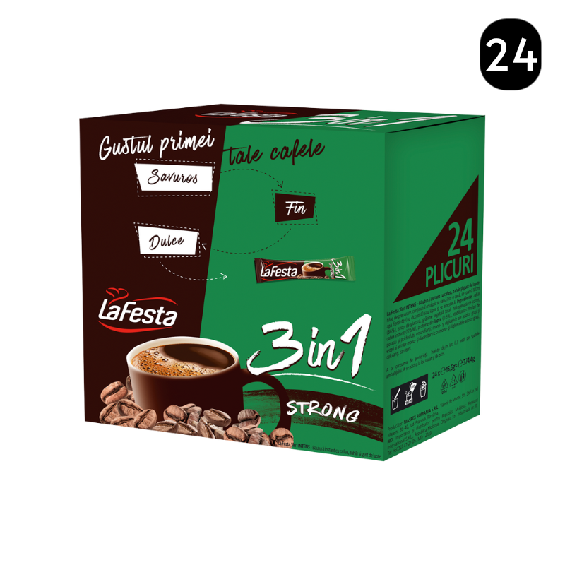 LA FESTA Cafea Instant 3 in 1 Strong – 24 Plicuri