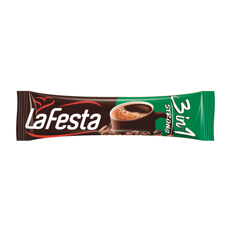 Bucură-te de gustul intens al cafelei instant cu La Festa 3 în 1 Strong, băutura rapidă și cremoasă care îți oferă energie și plăcere la orice oră din zi. Fiecare plic conține combinația perfectă de cafea, zahăr și lapte, pregătită să-ți ofere o experiență echilibrată și aromată în doar câteva clipe.