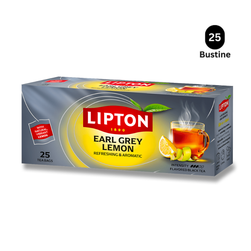 Ceai negru¹, arome, coaja de lamaie ( 2,2% ). Certificat ¹Rainforest Alliance™.